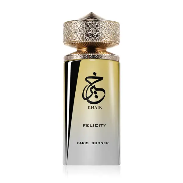 Dès les premières notes, Khair Felicity Paris Corner® révèle une ouverture pétillante et raffinée où l’éclat du champagne s’accorde à la fraîcheur du freesia et à la douceur fruitée du bourgeon de cassis. Cette envolée joyeuse et lumineuse évoque l’élégance d’une célébration, pleine de charme et de légèreté.
